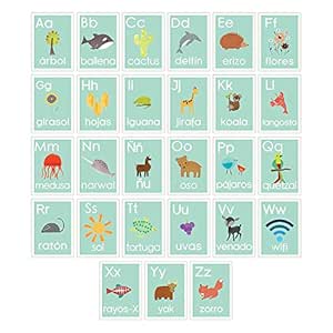 Amazon Com Spanish Alphabet 5x7 Wall Cards Blue Nature Kid S Wall Art Nursery Decor Kid S Room Decor Gender Neutral Nursery Decor Baby